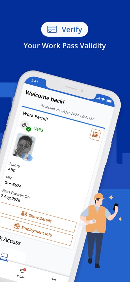 • Instantly verify pass validity by scanning the QR code on the pass card or digital work pass