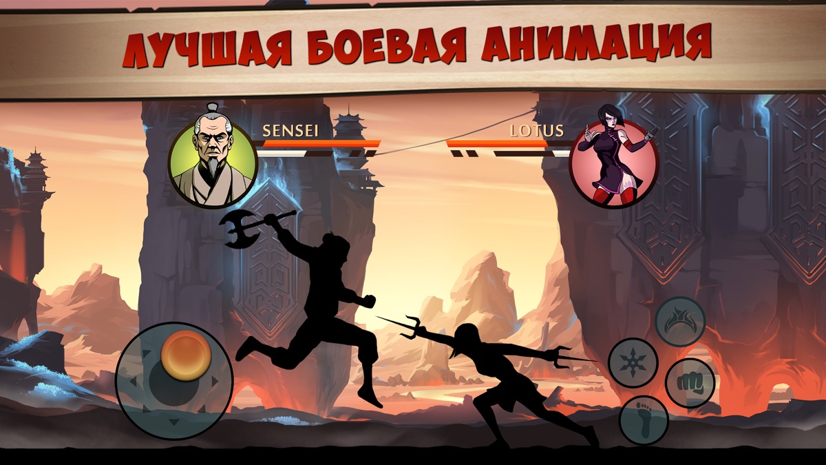 Shadow Fight 2 Special Edition использует интуитивное управление, идеально адаптированное под сенсорные экраны iPhone и iPad. Виртуальный джостик слева отвечает за передвижение, а кнопки атак и специальных приемов справа позволяют выполнять сложные комбинации. Каждое оружие — от катаны до нунчаков — меняет стиль боя, а плавная анимация и реалистичная физика делают каждый удар весомым.
