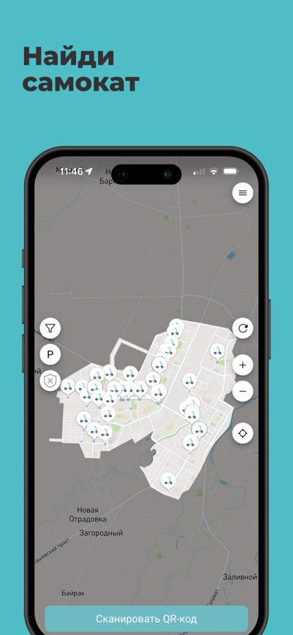 ⁃ Отсканируй QR-код на руле самоката для активации