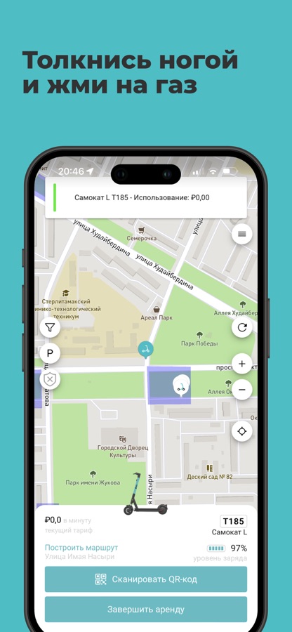 Больше не нужно ехать в определенную точку, оставлять в залог документы или деньги и подписывать бумажные договора. Все что нужно — это скачать наше приложение, пройти простую регистрацию, найти самокат на карте и начать свою первую поездку!