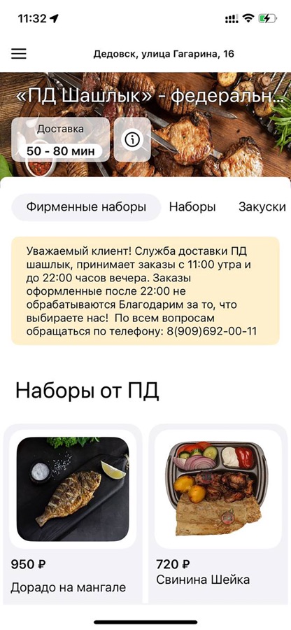 Мобильное приложение сети доставок шашлыка «ПД шашлык» удобный сервис для вкусной и быстрой доставки, возможно сделать заказ и смотреть статус его выполнения