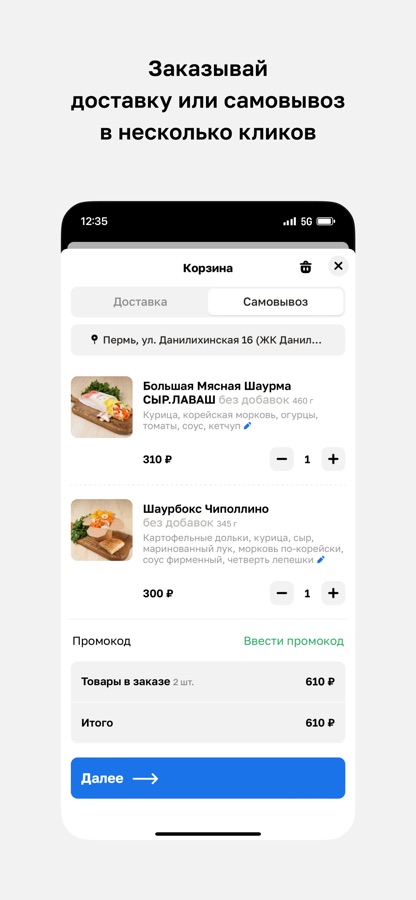 Мобильное приложение «Шаурма не за горами» — ваш надежный помощник в мире вкусной и ароматной кухни! С помощью этого приложения вы можете легко и быстро ознакомиться с меню, выбрать блюда по своему вкусу и заказать доставку прямо с вашего смартфона.