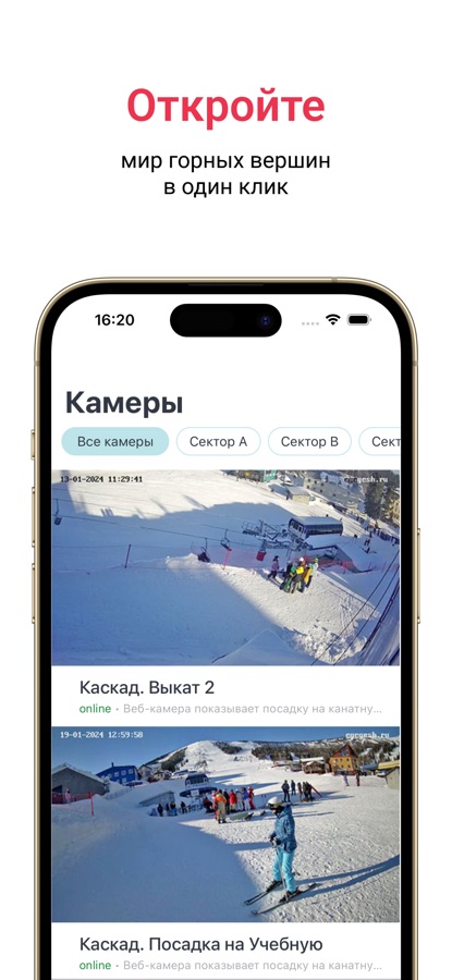 Помимо онлайн-съемки мы включили в приложение стоимость подъемников и ski-pass в текущем сезоне и описание ключевых трасс и подъемников, чтобы вам было проще выбрать локацию для отдыха.
