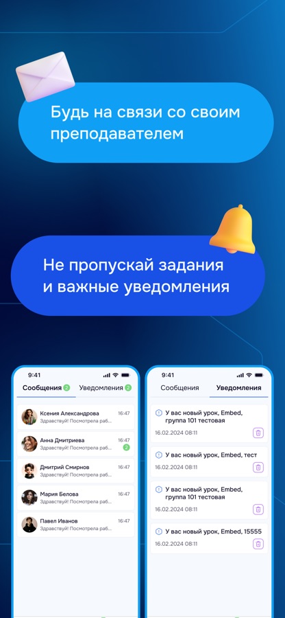 Учителя создают занятия, проводят онлайн-уроки, проверяют работы и отслеживают успеваемость учеников — всё в одном приложении.