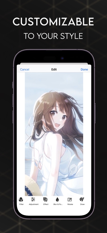 This app has tons of ready-made wallpapers for you to choose from. Besides that, we also have wallpapers where you can add your own images, customize them, add stickers, text, and tons of editing tools.