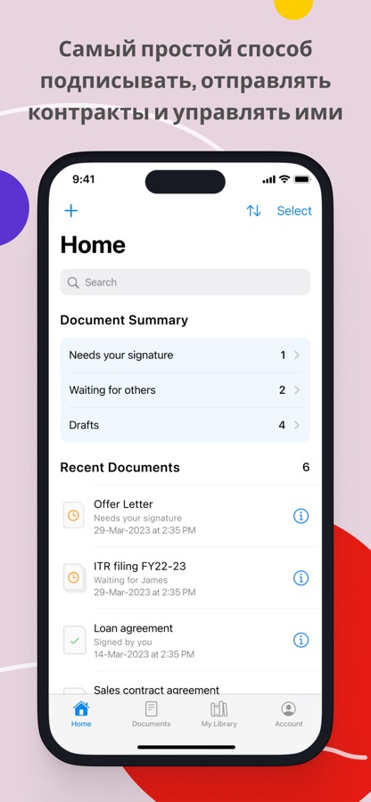 Signeasy — самый простой и быстрый способ подписывать документы самому или получать чужие подписи удаленно за считанные минуты. Приложению доверяют более 3 млн пользователей.