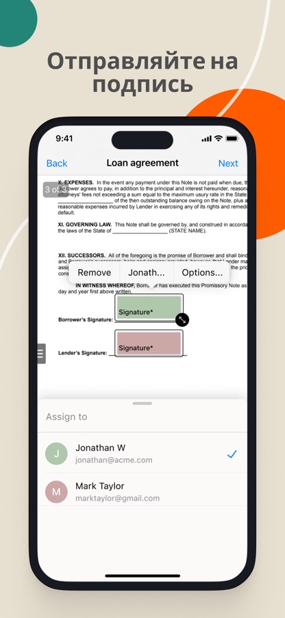 • Отправляйте документы на подпись коллегам, клиентам, партнерам — по соседству или по всему миру
