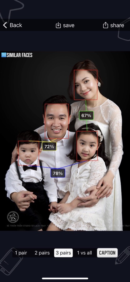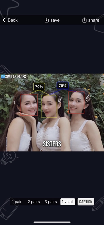 — 1 vs all: Compare one selected face with the others. In this mode, users can TOUCH on a face to compare it with the others.