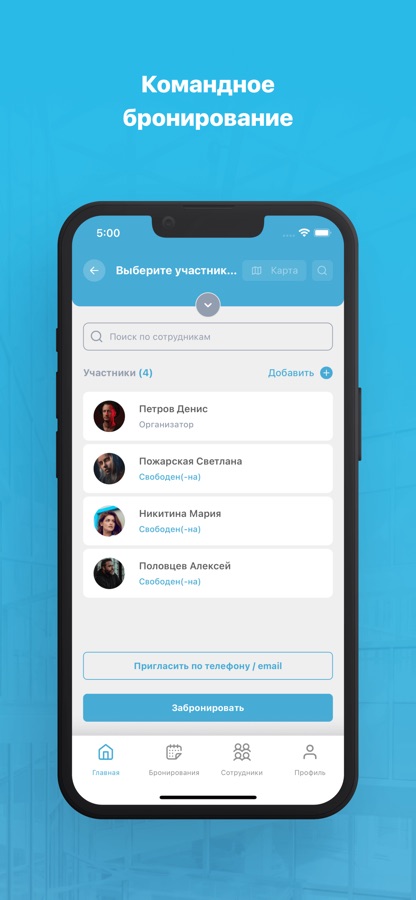 — Создавать команды для быстрого бронирования, «подписываться» на сотрудников, оставлять заявки своему админу, когда нужна помощь.А у администратора расширенный функционал.