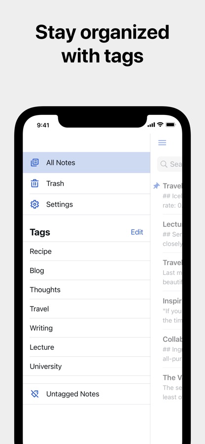 — Выбирайте порядок сортировки заметок и тегов.