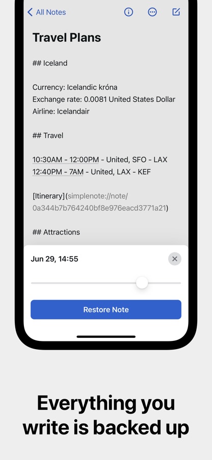 — Резервное копирование и синхронизация по мере ввода заметки: вы никогда ничего не потеряете.
