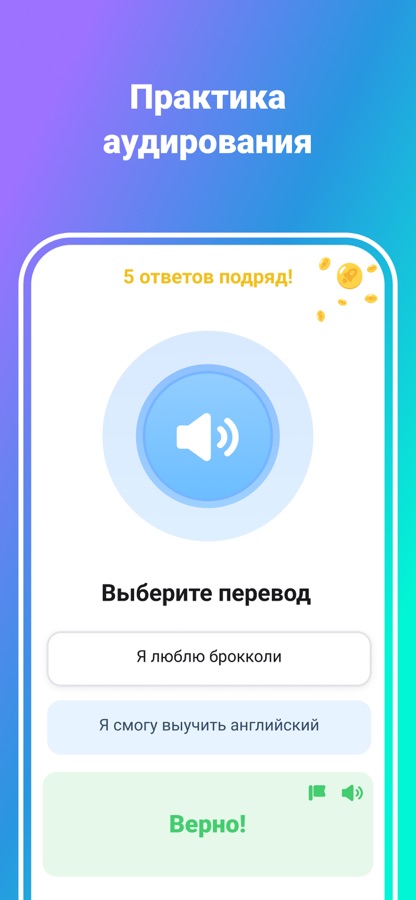 Не достаточно просто уметь читать и писать по-английски, важно ещё уметь понимать английский язык на слух. Для этого, мы озвучили каждую фразу в наших заданиях носителями языка, что особенно важно для начинающих учить английский язык с нуля.