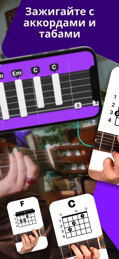 Учитесь гитаре своим темпом с пошаговыми учебниками топ-преподователей и получайте от приложения отклик по мере практики и заучивания песен!