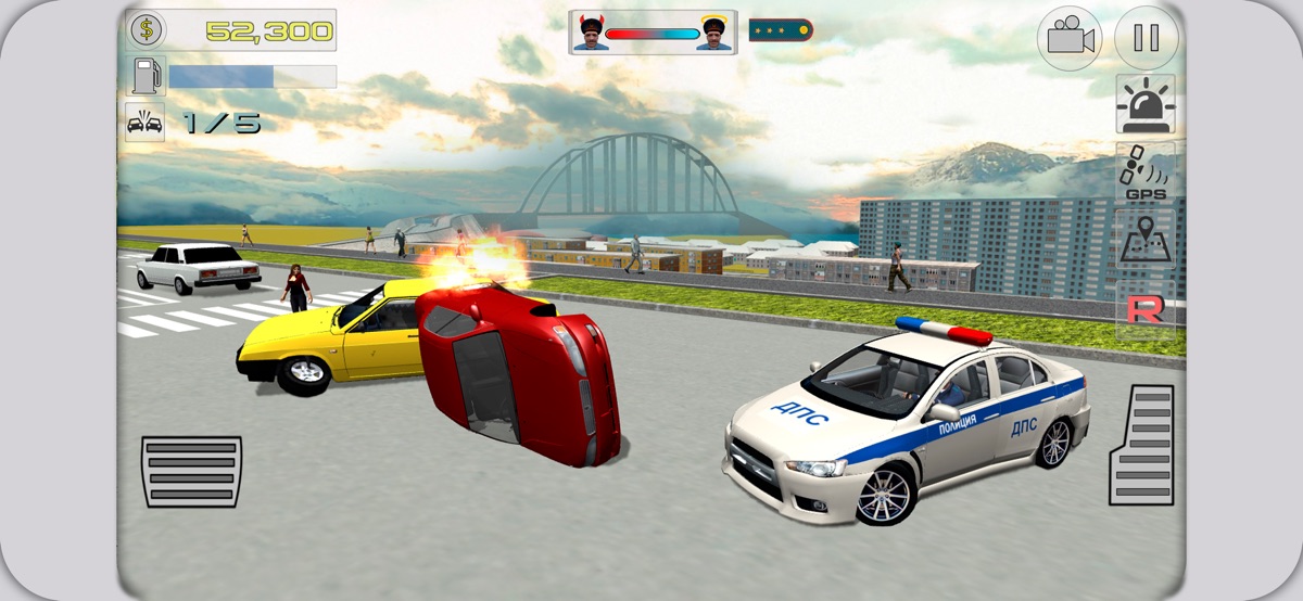 — Реалистичный физический движок — система повреждений вашего патрульного авто, спидометр, контроль за уровнем топлива