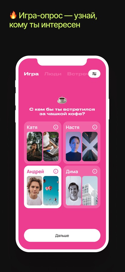 — Используй в любое время, когда у тебя есть настроение открыть для себя что-то новое — заходи тогда, когда будешь открыт для новых знакомств. Пусть у тебя всегда будет место, куда можно прийти за новыми интересными людьми и не отвлекаться ни на что другое.