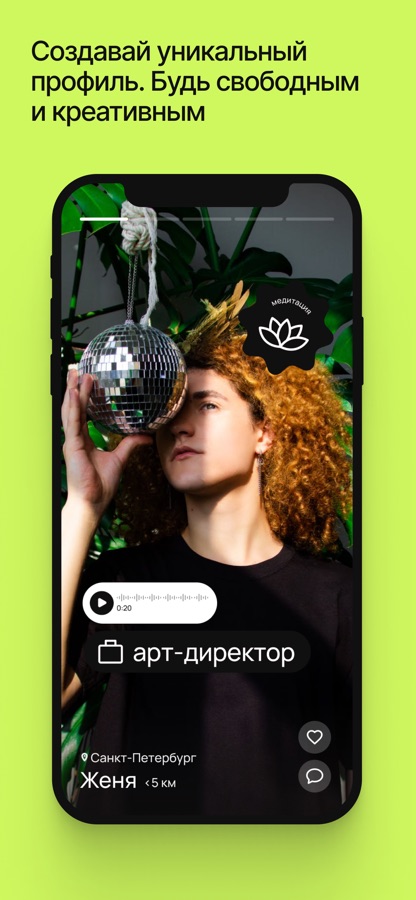 — Создай уникальный профиль — твоя личность индивидуальна, поэтому она заслуживает совершенно нового подхода к созданию профиля — веселого и творческого. Какой ты? Что для тебя важно? Расскажи о себе по-новому. Узнай себя лучше и расскажи о себе другим. Самовыражайся и будь свободен в своей саморепрезентации. Так ты можешь узнать больше и о других — каждый профиль уникален, и ты познакомишься с новыми людьми, с которыми точно будет что обсудить — ваши интересы, работу, любимую еду, кино…которое вы, может быть, захотите посмотреть вместе.