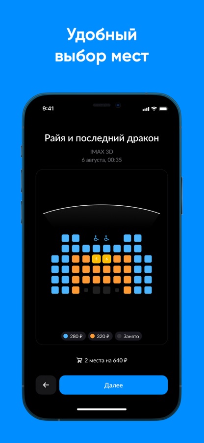 Выбери удобный сеанс и кинозал, купи билет в один клик, участвуй в бонусной программе и наслаждайся просмотром интересного кино.