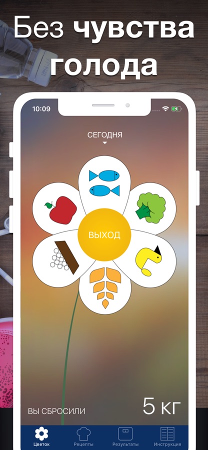• Календарь диеты в виде цветка с шестью лепестками превращает скучный и тяжелый процесс в игру