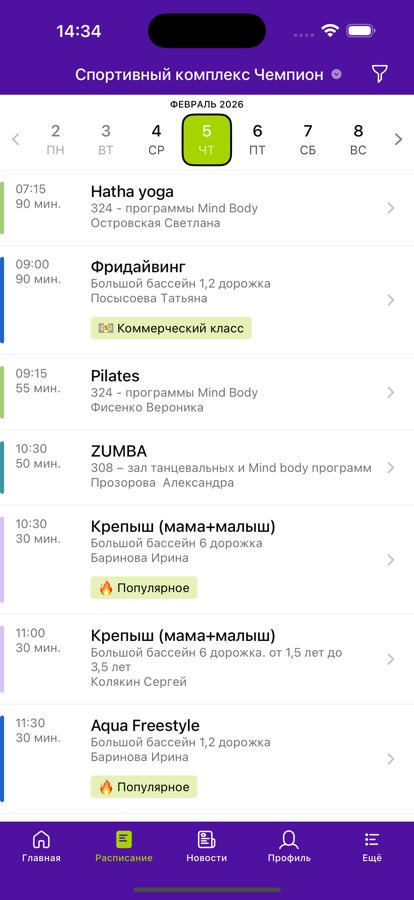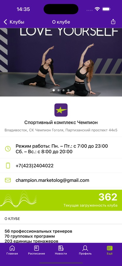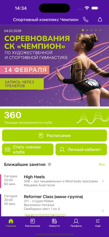 С помощью приложения вы можете следить за новостями, расписанием клубов, оперативно получать информацию об изменениях в расписании и специальных предложениях.
