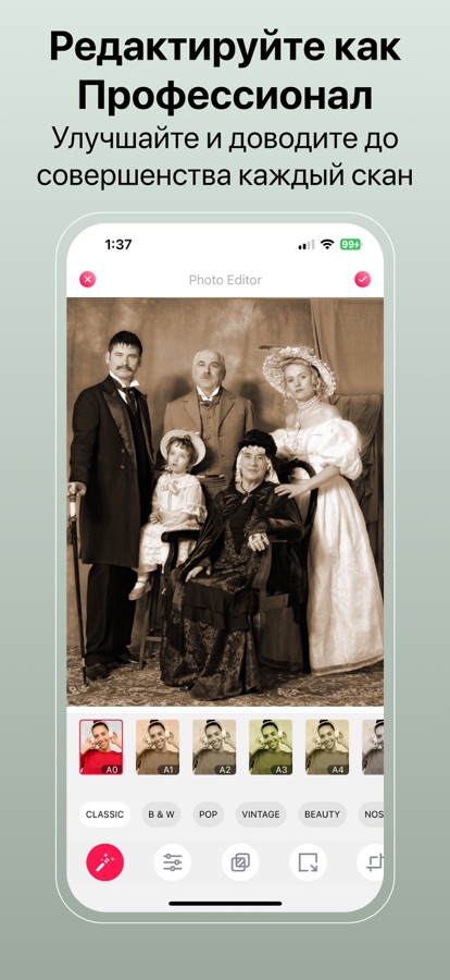 Продвинутая обработка фото: Улучшайте качество старых фото, добавляйте цвет и редактируйте изображения прямо в приложении.