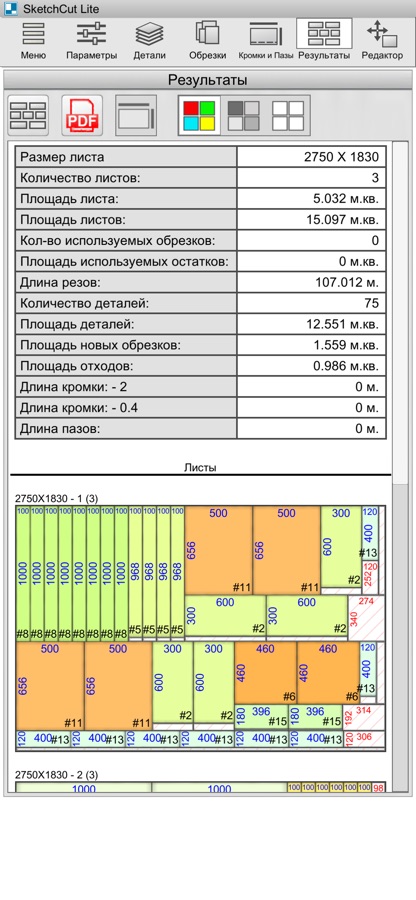 SketchCut Lite — Быстрый раскрой. Приложение для автоматического создания карт раскроя.