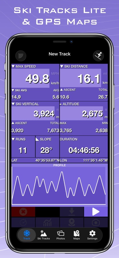 Скачайте Ski Tracks Lite & карты GPS и начните записывать свои спуски уже сегодня!