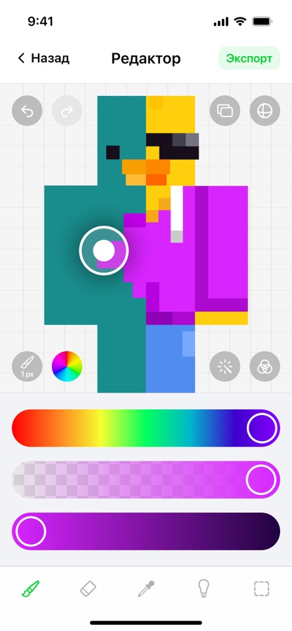Используй кисти, ластик, пипетку и точные инструменты для работы над каждой мелкой деталью. Отменяйте или повторяйте действия столько раз, сколько нужно, пока не получите идеальный результат.