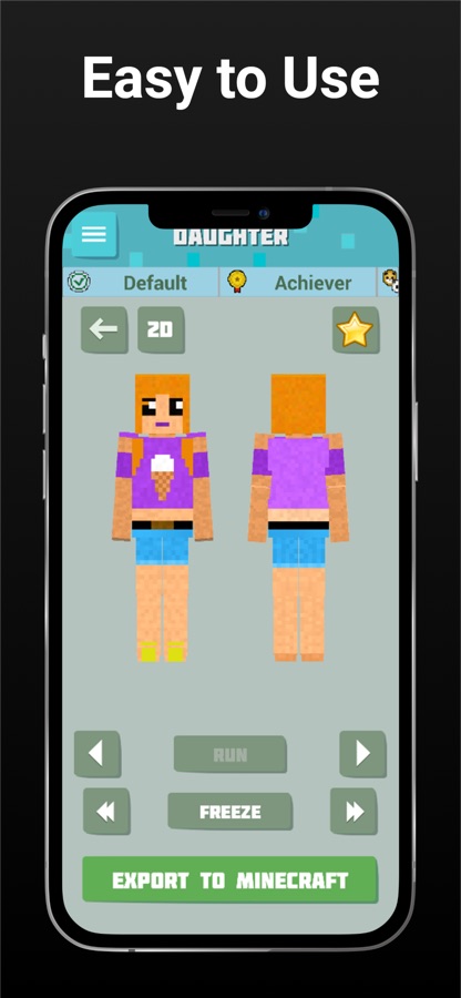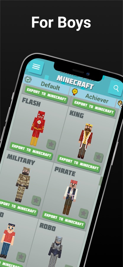 All skins in HD quality with interactive 3D preview. Simply choose the skin you like and add them to Favorites. Discover different and cool looks presented in such characters: superheroes, animals, zombie, baby, noob and more!