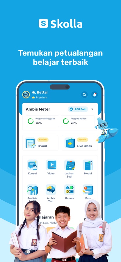 Skolla — merupakan aplikasi belajar online untuk kelas 4 SD hingga 12 SMA & Alumni yang bisa membantumu memahami materi pelajaran dan mempersiapkan diri untuk menghadapi ujian masuk sekolah dan PTN impian (SNBP & UTBK-SNBT).