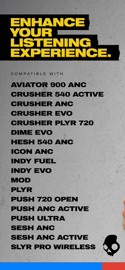 Enhance and customize your listening experience with the Skullcandy App. Control product features and settings, access user guides, and update product firmware versions as Skullcandy releases updates to some products in market.