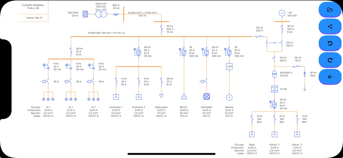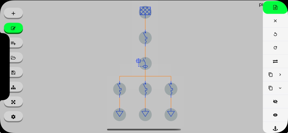 This tool will allow you to create your own one-line diagrams quickly and easily. Simply select the symbol you want to use and drag it to the desired position.