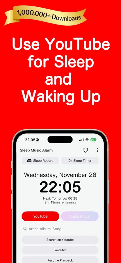 Wake up to music you actually love — from YouTube, Apple Music, or your own recordings. Sleep Music Alarm is an all-in-one alarm, sleep tracker, and sleep timer designed