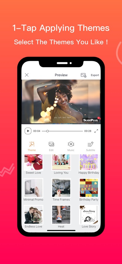 Интеллектуальный видеоредактор SlidePlus принимает удобство как главный приоритет при редактировании видео. Темы в SlidePlus уже имеют все встроенные переходы и эффекты, поэтому все, что вам нужно сделать, это добавить медиа. Вы выбираете фотографии / видеоклипы, выбираете любимую тему и музыку на SlidePlus, а затем получаете то, что раньше создавалось часами.