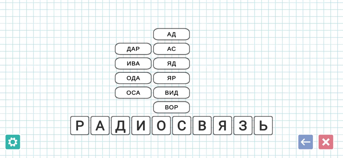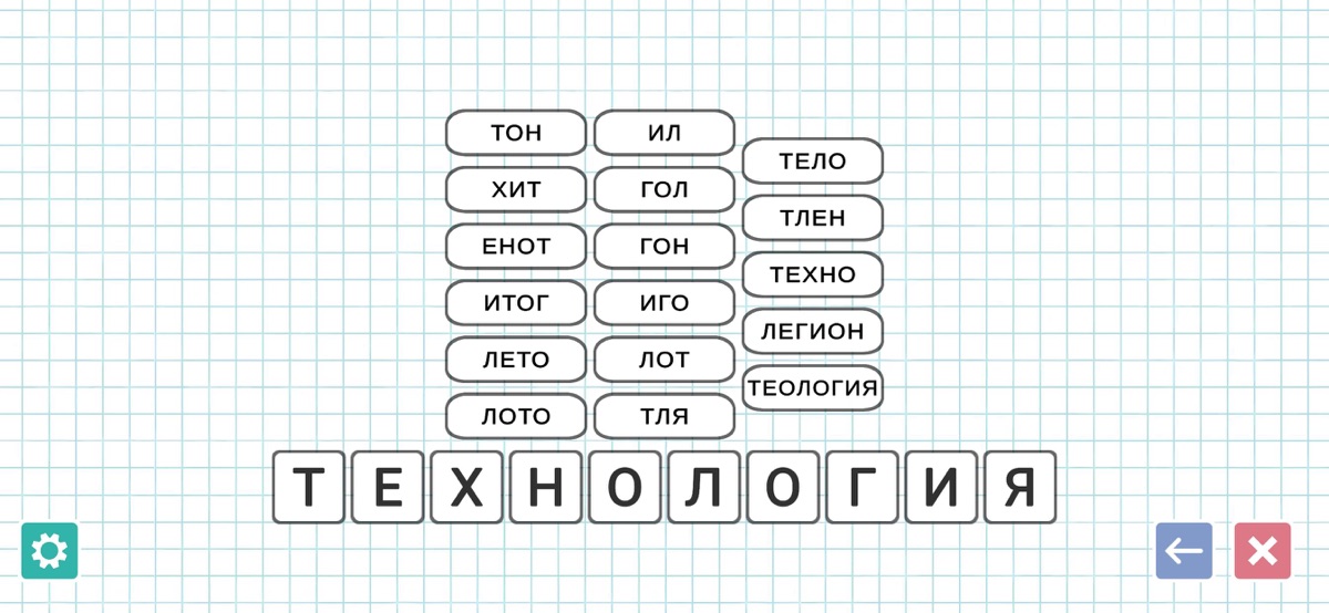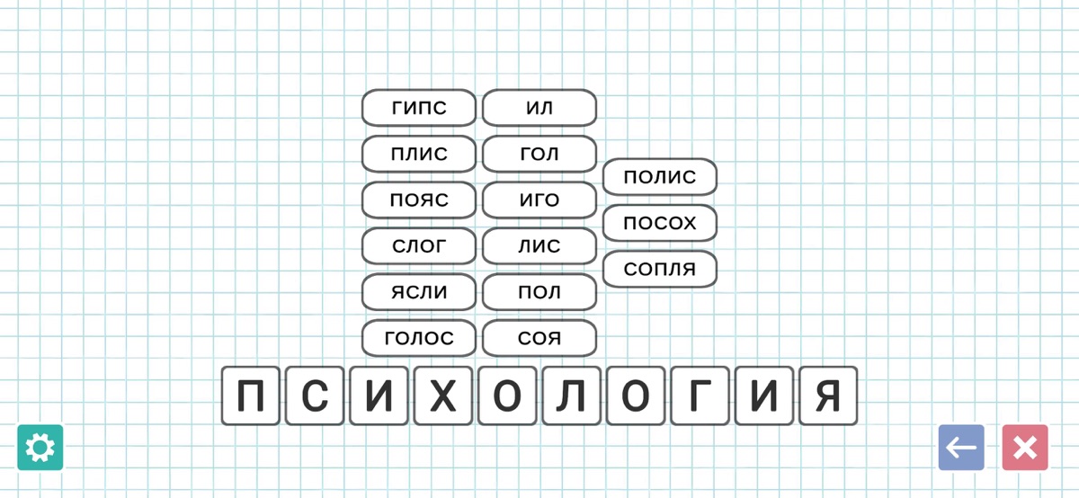 Каждый уровень – это новое испытание, где у вас есть одно длинное слово (от 10 до 11 букв), из которого нужно составить как можно больше слов из слов. В зависимости от уровня они могут содержать в себе от 2 до 11 букв. Конечно же, самые распространенный слова содержат в себе 5 букв. Чтобы пройти уровень, необходимо найти минимум определённое количество слов. А для самых искушенных игроков приготовлены дополнительные задания, например, поиск слов, начинающихся на определённую букву.