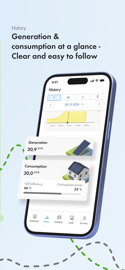 Thanks to the SMA Energy app, you can see all the most important data relating to your SMA Energy System in a clearly structured format. You can intelligently manage energy flows in your household or charge your electric vehicle – sustainably with your own solar power or at high speed if you’re in a hurry. Thanks to the SMA Energy app, you can have your own personal energy transition in your pocket.