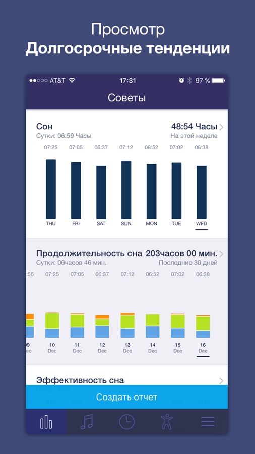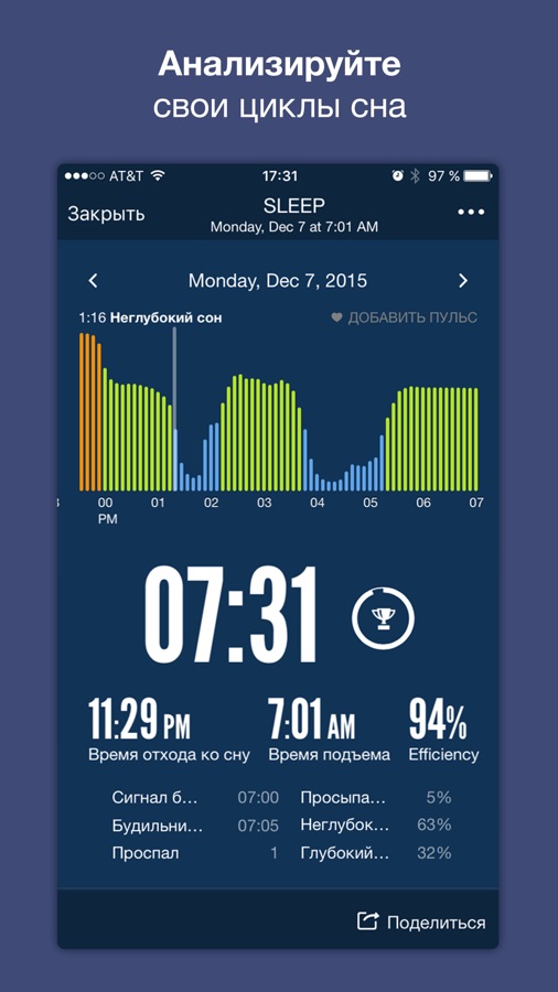 √ Sleep Lab ™ с анализом цикла сна — легкий сон, глубокий сон, R.E.M.