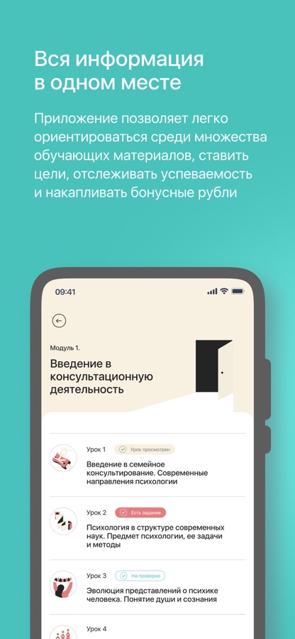 Приложение открывает двери в мир психологического онлайн-обучения прямо с экрана вашего смартфона. Вы получите доступ к полному спектру образовательных услуг института Smart, включая просмотр лекций, выполнение домашних заданий, оперативное получение обратной связи и взаимодействие с куратором. В раздел «Обучение» вы найдёте информацию о выбранных тренингах, расписании мероприятий института, обязательных тестированиях и уже полученных дипломах. Приложение также позволяет ставить учебные цели и отслеживать их достижение. Кроме того, вы можете подписаться на уведомления через удобный мессенджер или получать их непосредственно в приложении. Обучающий контент организован по модулям (разделам), каждый из которых посвящен отдельной психологической теме, обеспечивая тем самым структурированное и последовательное изучение материала.