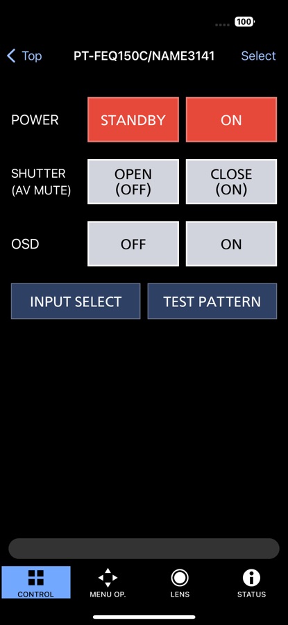 Smart Projector Control is a smartphone application for operating Panasonic projectors. By installing Smart Projector Control onto your iPhone, and using wireless LAN (Wi-Fi) or USB to connect to a network containing a Panasonic projector, you can operate the projector and check the projector status from your smartphone.