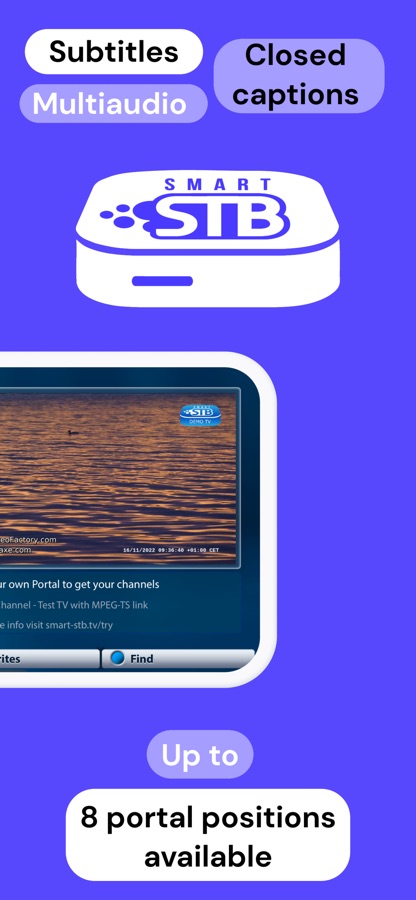 Please note that Smart STB is an application to establish a connection between you and your IPTV Provider. You need a valid subscription from a streaming service provider. We do not deliver, broadcast or transmit TV channels, TV portals or playlists. Smart STB does not provide for any unauthorized use of third-party material protected by copyright and distances itself from it in all forms.