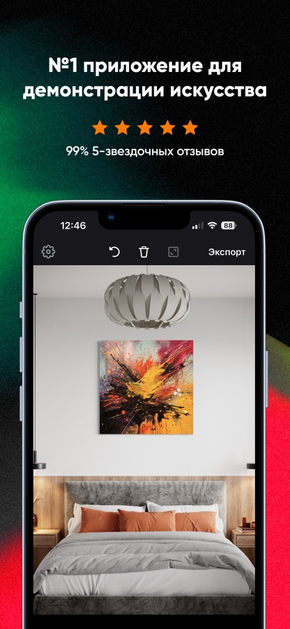 Исследования показывают, что при демонстрации произведений искусства с использованием реалистичных визуализаций вероятность их продажи возрастает. Наше приложение для предварительного просмотра позволяет коллекционерам увидеть ваше произведение искусства в своем помещении. Благодаря точным размерам они могут реально увидеть, как оно будет выглядеть.