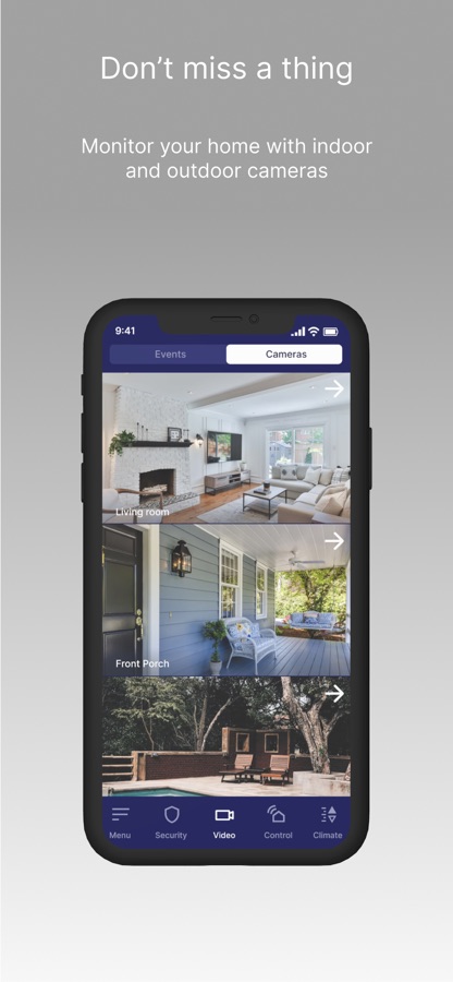 Enjoy full interactive home control including lights, locks, cameras, thermostats, garage doors, and other connected devices.