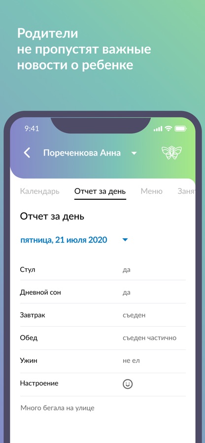 — Личные данные ребенка, включая особенности питания, физической нагрузки, группу здоровья и пр. Вы можете быть уверены, что аналогичные данные видят сотрудники сада.
