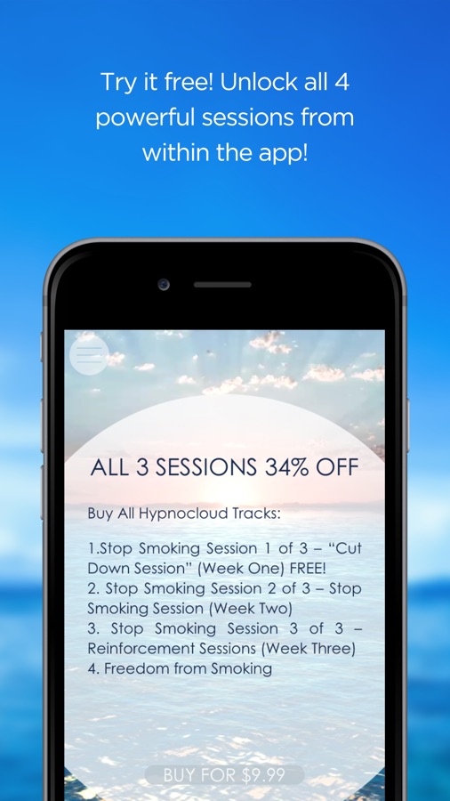 1. Our Stop Smoking Hypnosis App includes Step 1 of the 3-Step Stop Smoking Process for FREE. This session will help you cut down smoking by 50% and help reduce cravings.