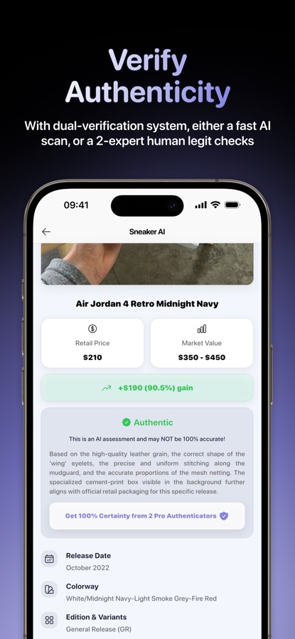 Because while other apps focus on luxury handbags or watches, we focus on the culture you care about. Whether it’s a standard pair of Retros or a rare collaboration, our sneaker identifier and expert team provide the most reliable legit check in the industry.