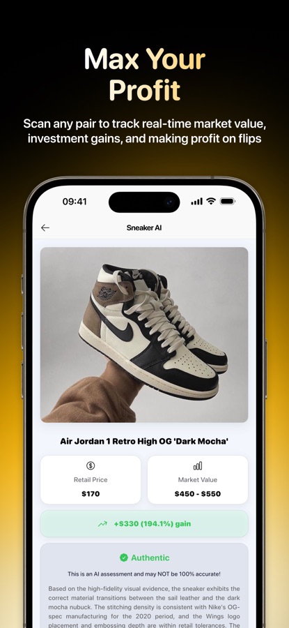 To fully enjoy Sneaker AI, upgrade to Pro version for unlimited scans, deeper sneaker analytics, exclusive access to new features, and expert sneaker knowledge. The ultimate and perfect tool to level up your sneaker game.