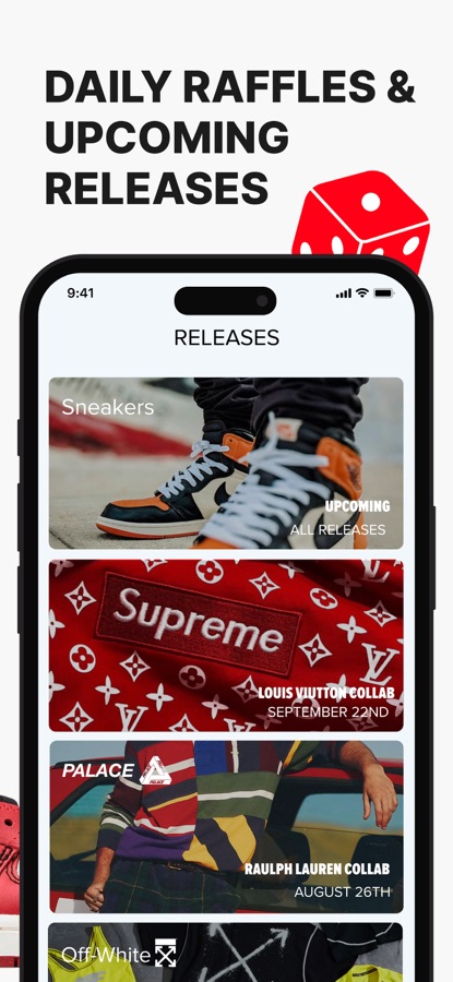 — Обновления уличной одежды: Выходите за рамки кроссовок с еженедельными обновлениями Supreme, Bape, Palace и других культовых брендов уличной одежды.