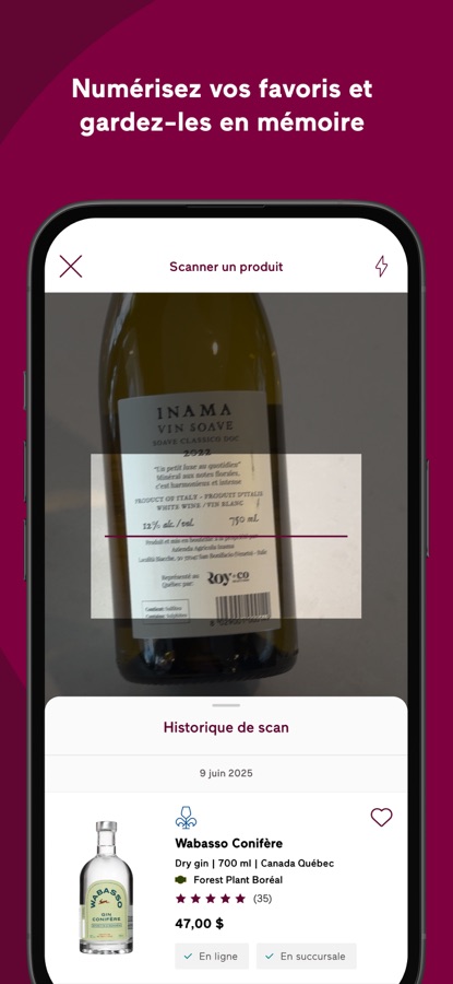 Avec cette application, vous pouvez ajouter votre carte Inspire, consulter votre solde de points et vos offres exclusives Inspire, acheter des produits, synchroniser vos favoris avec votre compte SAQ.COM et consulter les heures d’ouverture de la SAQ la plus près!