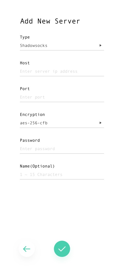 1、Please add server first: Click 「Add」and select「Manual Input」,then input your server info; (You can read the help to setup your own server)
