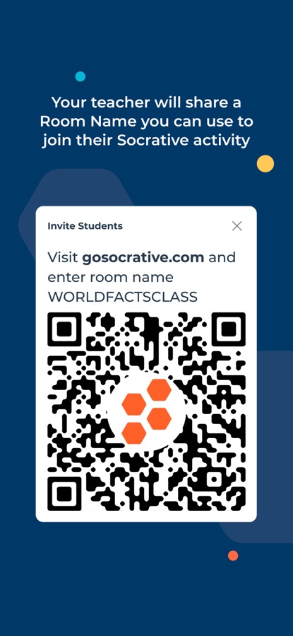 Students share their understanding by answering formative assessment questions in a variety of formats: quizzes, quick question polls, exit tickets and space races. Once students launch the Socrative Student App, they’ll be prompted to join the teacher’s room via the teacher’s unique code. No student accounts necessary!