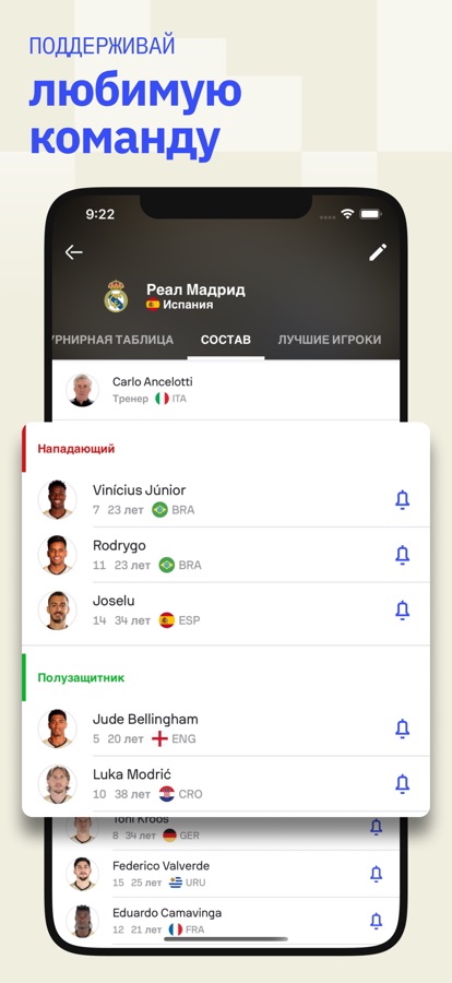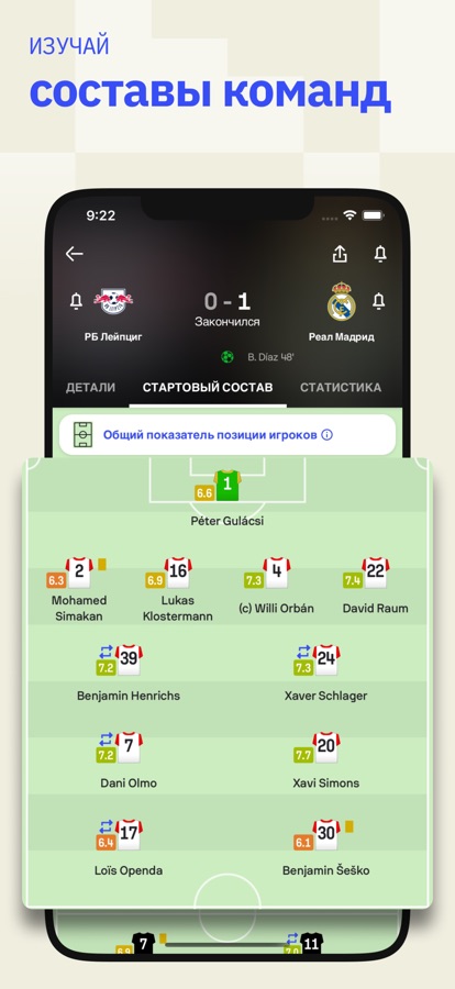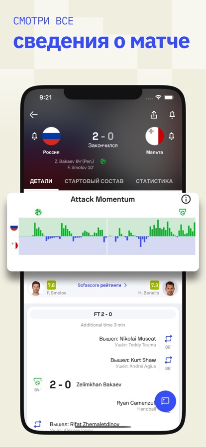 • Информация об игроках: подробная статистика по забитым голам, показателям игроков и спортивным событиям – узнавайте первыми